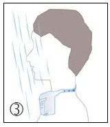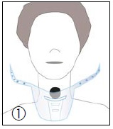 ü Guide the Shower Guard around the neck and fasten it according to the individual neck size of the patient by leading the provided press button through the openings of