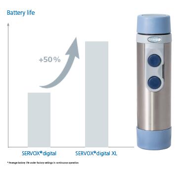 Thanks to its modern and smart power management, the SERVOX® digital XL speech aid offers significantly extended battery performance.